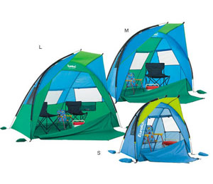 You'll have it "made in the shade" with the new Eureka! Solar Shade. Protection from rain or sun whether you're at the beach or on a picnic, on the sidelines or in your own backyard. Easy to carry, easy to set up, with mesh windows and large front door that zips shut for privacy. Made of rugged StormShield polyester designed to deliver dry, tough performance, even in challenging environments. Details: Lightweight, durable fiberglass 3-pole frame; Post & grommet attachments speed set up and enhance sturdiness; Sewn-in floor with taped seams ensures dryness underfoot; 4 wind guy-out loops; Four sand pouches for alternative anchoring; 2 clothesline rings (Medium and Large model only); 2 labeled organizer pockets (Large model only); 3 mesh windows with storm flaps; Walls: 75 denier StormShield polyester; Floor: 70 denier nylon taffeta; Netting: polyester no-see-um mesh; Poles: 7 mm (Small), 8.5 mm (Medium), 9.5 mm (Large); 2-year warranty. This is Eureka! quality at an affordable price! Find the model that suits your needs in the chart below. State Size. Order Today! Eureka! Solar Shade